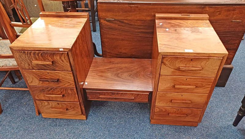 Mid 20th century rosewood bureau with fall front over 2 drawers on queen anne supports...