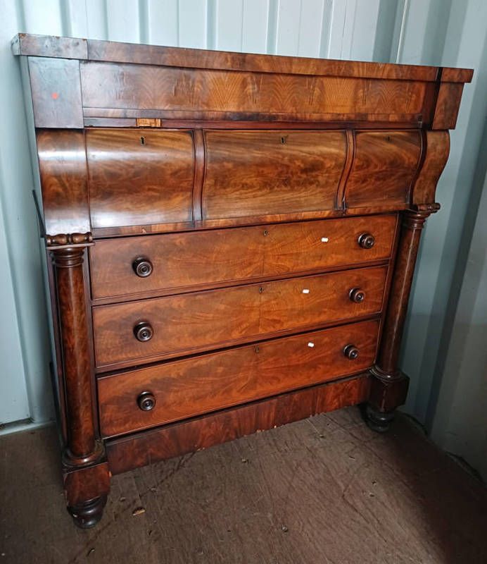 19th century mahogany ogee chest of drawers with barley twist columns - 138 cm tall