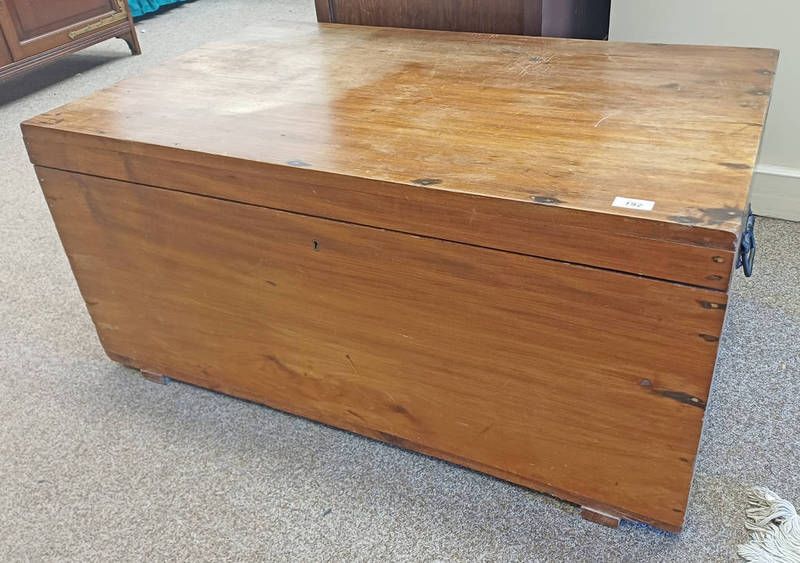Modern pine kist with metal fittings & metal trunk with brass fittings
