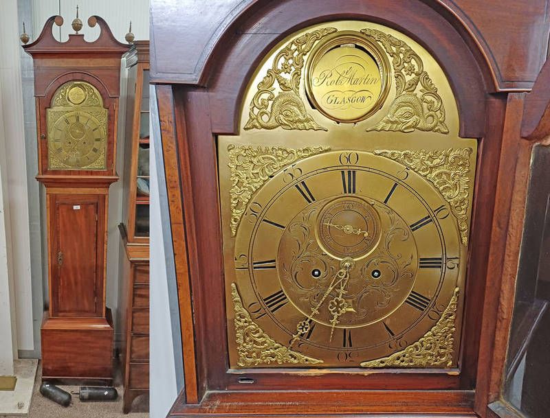 19th century longcase clock with burr inlay & brass dial signed robert martin, glasgow - 227 cm tall