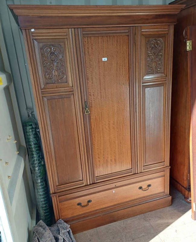 Late 19th century walnut mirror door wardrobe with single long drawer to base