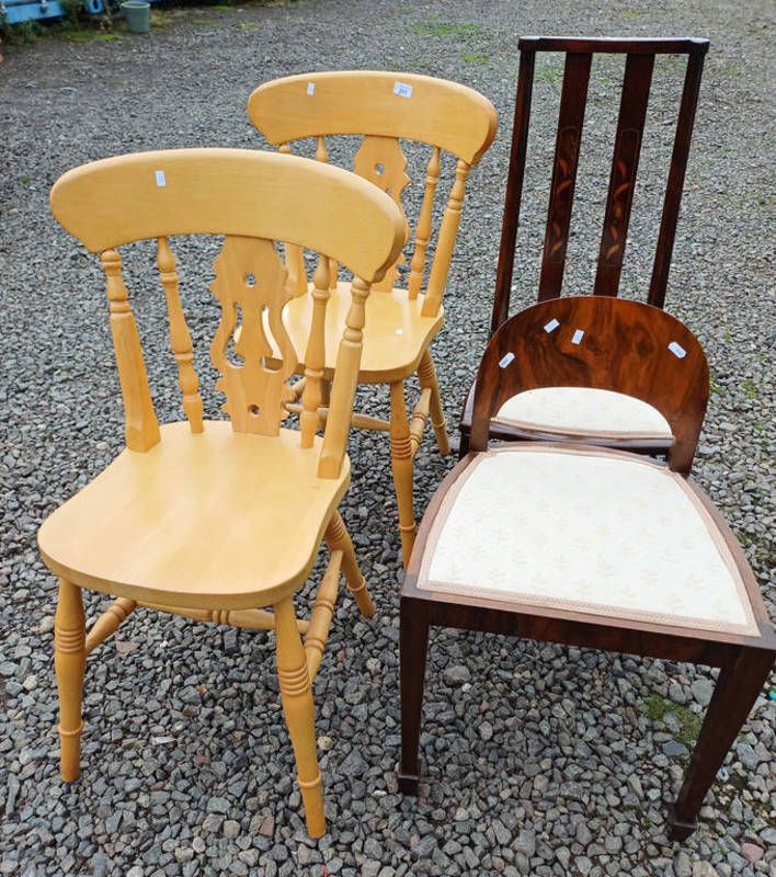 Pair of oak kitchen chairs, walnut dressing table stool etc.