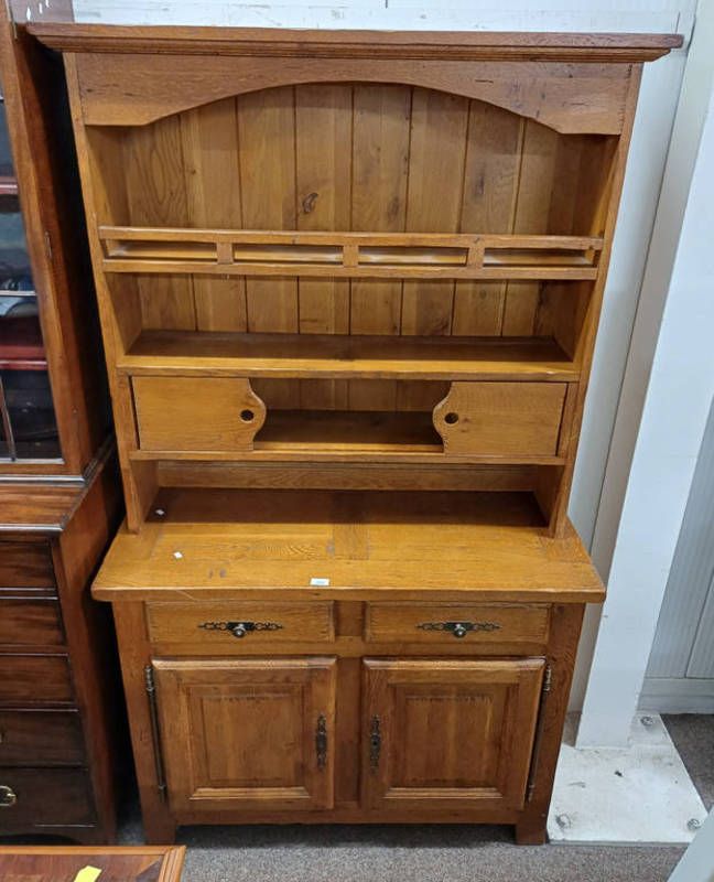 Oak dresser with shelf back with 2 sliding doors over base with 2 drawers over 2 panel doors - 190 cm tall