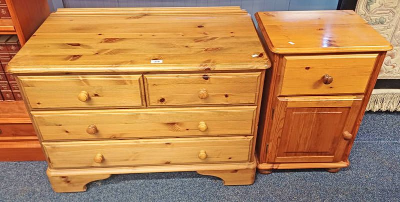 Pine chest of 2 short over 2 long drawers & pine bedside cabinet with single drawer over panel door