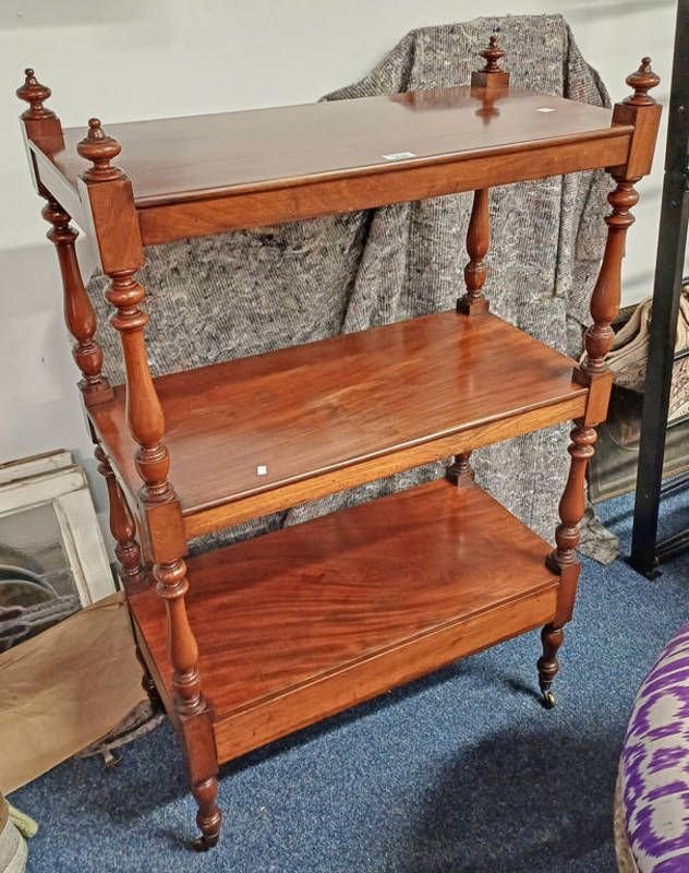 19th century mahogany 3 tier buffet with single drawer to base on turned supports - 120 cm tall