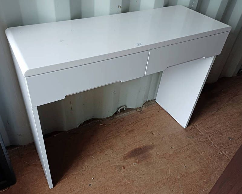 White lacquer dressing table with 2 drawers - 100 cm long