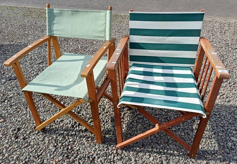 2 teak framed director's chairs