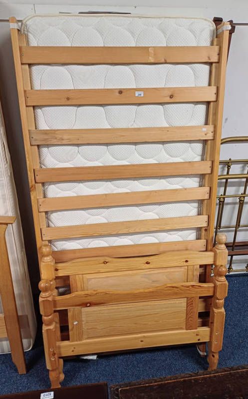 Pine single bed frame with mattress