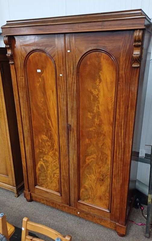 19th century mahogany 2 door wardrobe with single drawer to base - 210 cm tall
