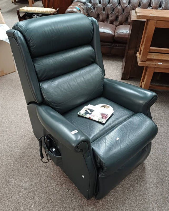 Magazine rack with marble inset, wingback reclining armchair, etc