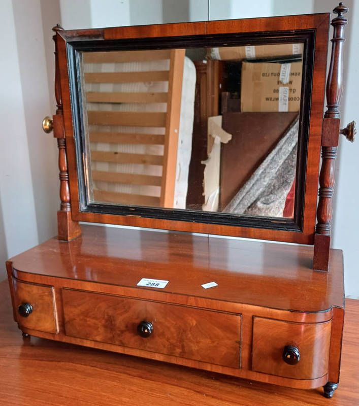 19th century inlaid mahogany dressing table mirror with 3 drawers to base