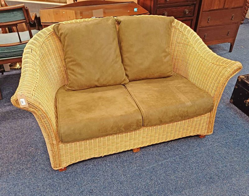 Dobbies garden centre wicker corner settee & matching occasional table with glass inset top