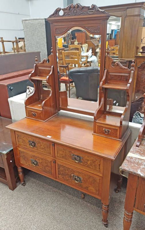 Late 19th century walnut dressing table with swing mirror & 2 short drawers over base with 2 long drawers on turned supports - 107 cm wide