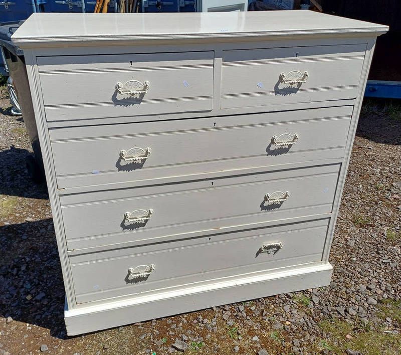 Late 19th century painted chest of 2 short over 3 long drawers on plinth base - 112 cm tall x 104 cm wide