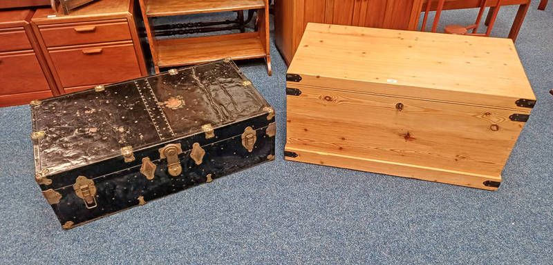 Modern pine kist with metal fittings & metal trunk with brass fittings