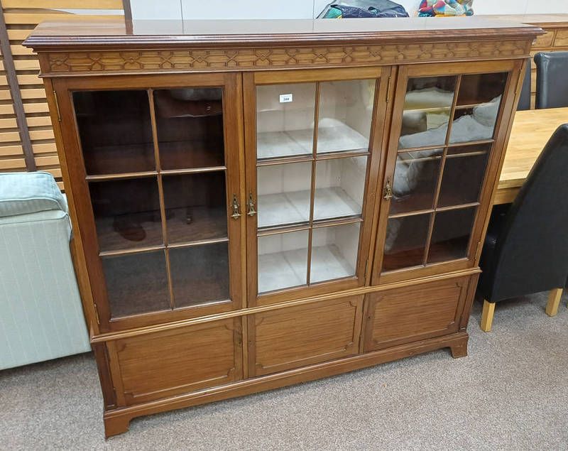 Early 20th century mahogany bookcase with 3 glazed panel doors over 3 panel doors by galloway & sykes ltd, aberdeen labelled to interior - 136 cm tall x 152 cm wide