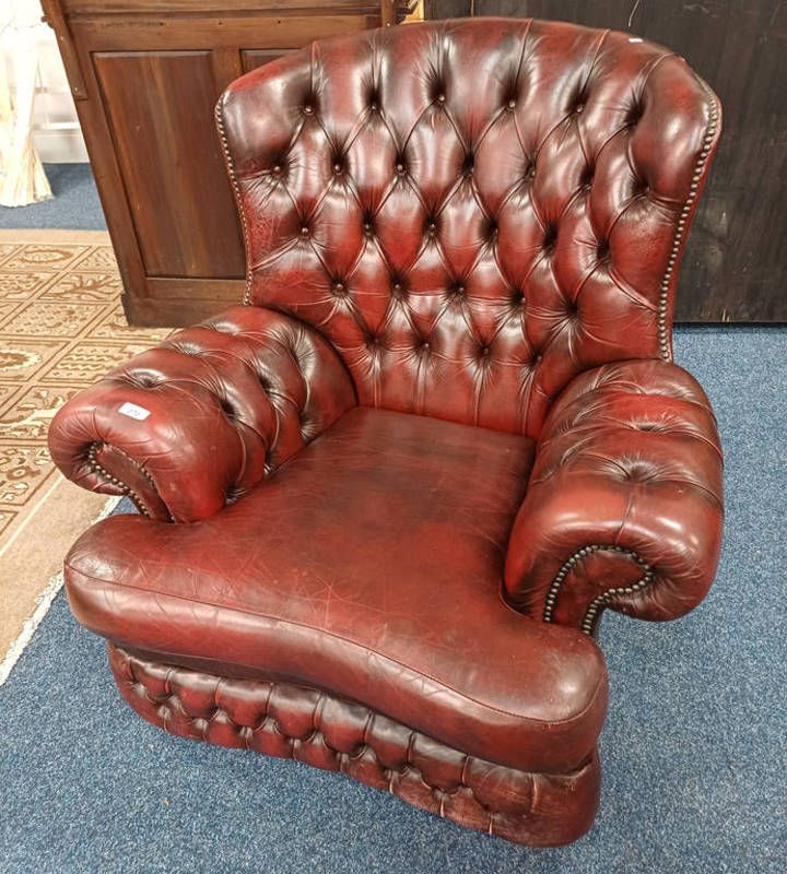 Oxblood leather buttoned back chair