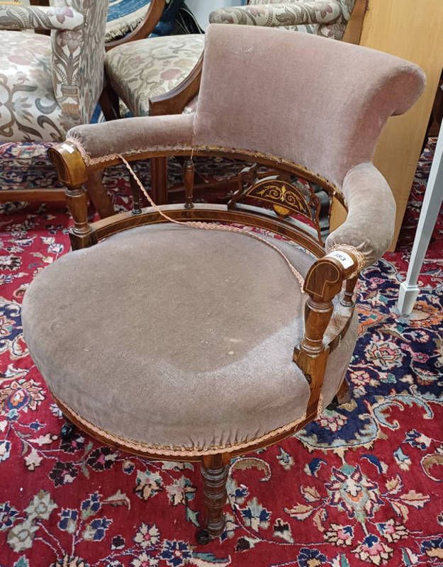 Late 19th century rosewood chair with barley twist decoration & floral tapestry back & seat...