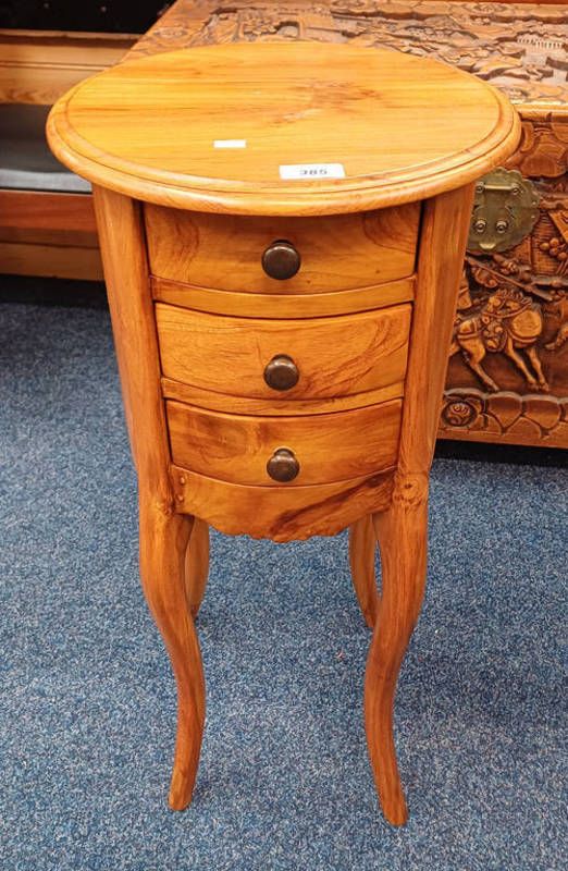 Hardwood cylinder chest with 3 drawers on shaped supports