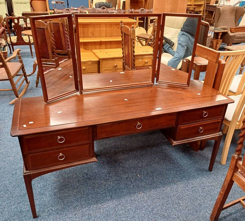 Stag mahogany dressing table with mirrors over table 5 drawers - 152 cm long