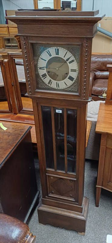 20th century oak longcase clock with brass & silvered dial - 181 cm tall