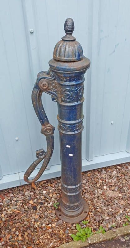 19th century style cast iron water pump with overall embossed decoration