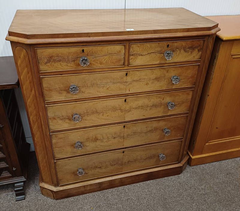 19th century satin birch chest of 2 short over 4 graduated drawers with cut glass knobs on plinth base - 114 cm tall x 112 cm wide