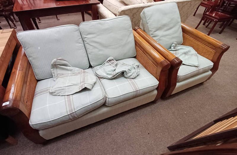Oak framed bergere settee & matching armchair