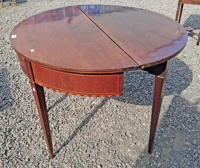 Late 19th century inlaid mahogany demi-lune tea table on square tapered supports - 91 cm...