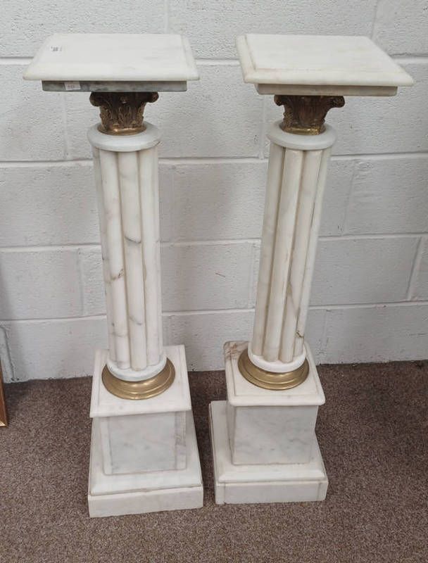 Pair of 20th century marble columns with gilt metal mounts, 100cm tall