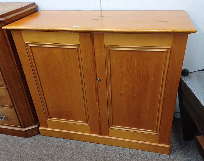 20th century pine 2 door cabinet on plinth base - 107 cm tall x 123 cm wide