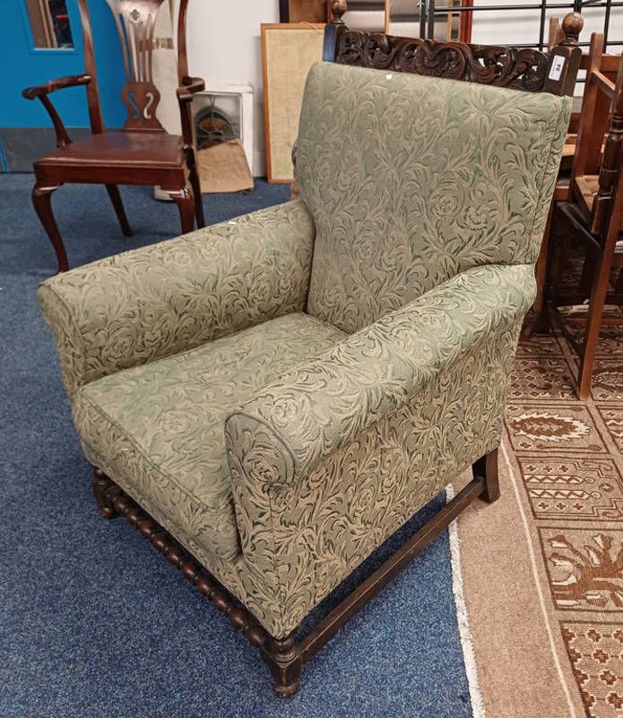 Late 19th century inlaid mahogany ladies chair on square tapered supports, mahogany tapestry fire screen...