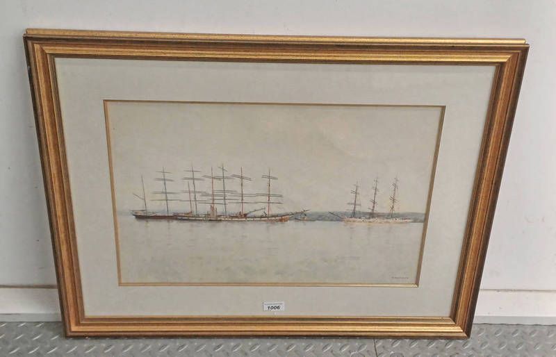 Fredrick massey pair of sailing boats signed gilt framed watercolour 35cm x 52cm