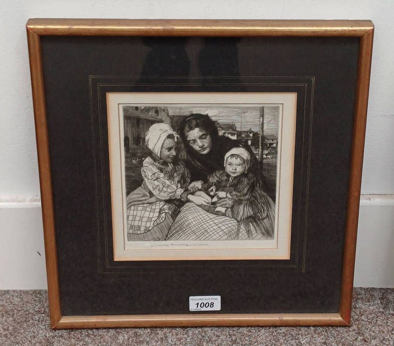 William lee-hankey mother and children signed in pencil, with stamp framed etching 19cm x 18cm