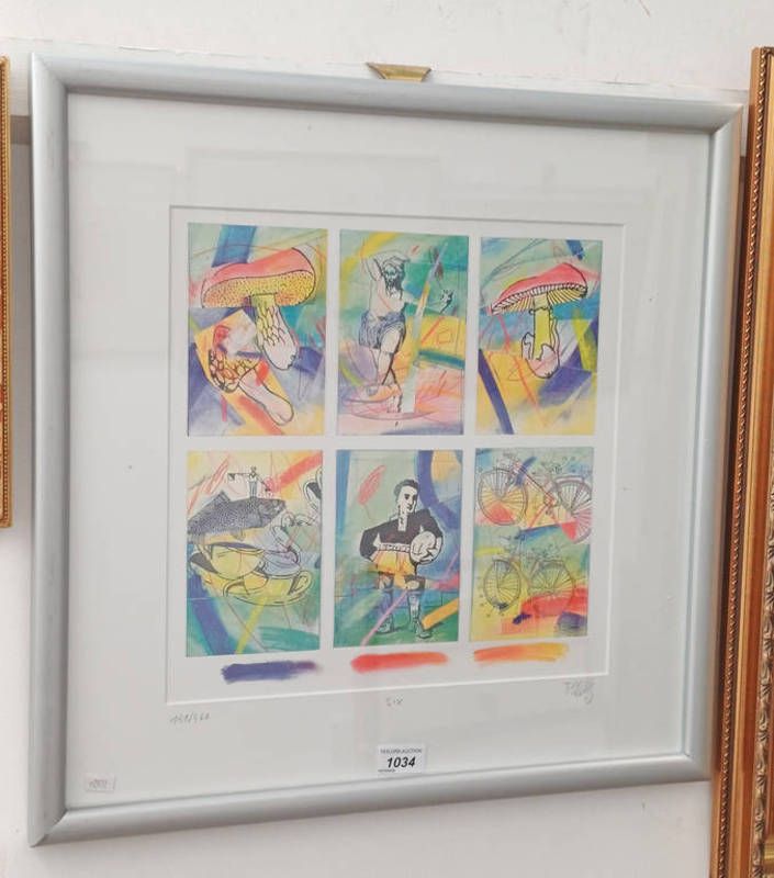 Bernd flemming ''six'' framed modernist print signed in pencil 35cm x 35cm
