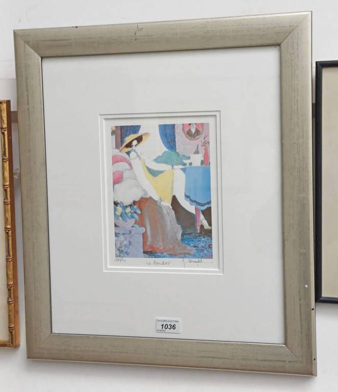 Michel boulet ''le boudoir'' signed in pencil, label to reverse framed print 22cm x 17cm
