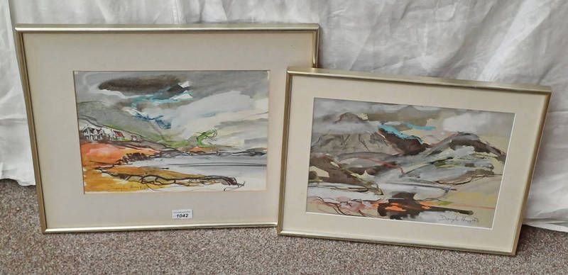 Douglas hogg, 2 framed mixed media paintings, quinag-sutherland and invertorrdon, both signed, largest: 26cm x 34cm