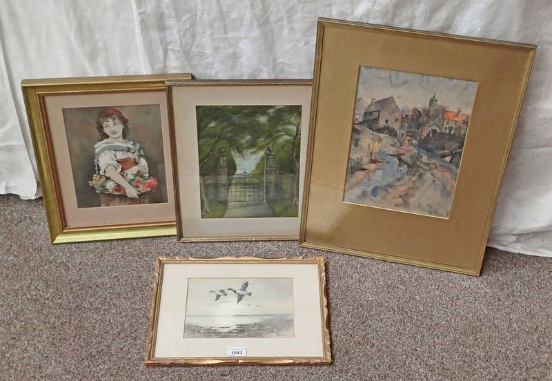Jackson simpson, pochard duck, signed, gilt framed watercolour, and 3 other watercolours, largest: 33cm x 23cm