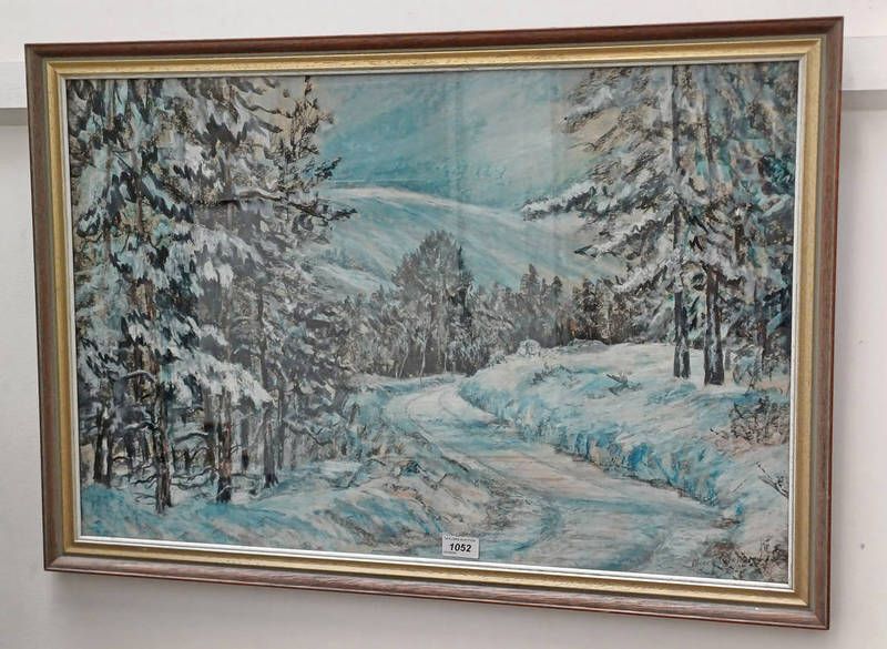 Patricia carr martin winter - forest of birse signed, label to reverse framed pastel 50cm x 75cm