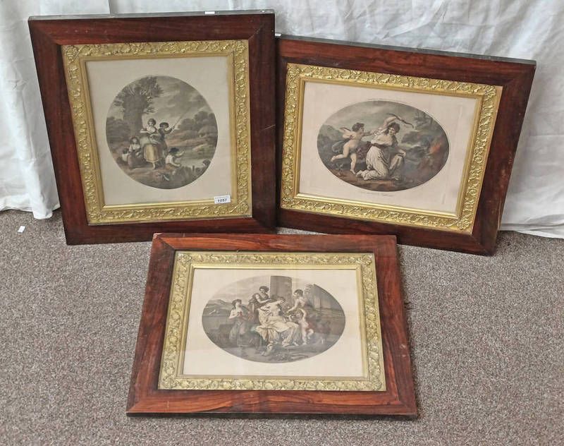 3 gilt framed engravings, 2 after fran. bartolozzi ''april''and ''the toilet of venus'' and one other after tho. burke ''cupid disarmed by euphrosine'', 30cm x 38cm each