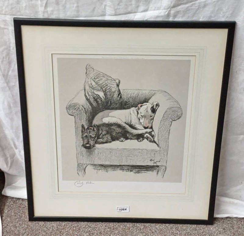 Cecil aldin 2 dogs sleeping signed in pencil, label to reverse framed print 44cm x 38cm