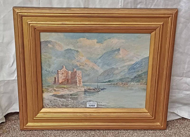 David watts lochranza - arran signed gilt framed oil on board 30cm x 39cm