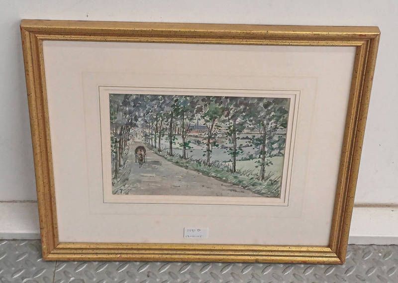 Herbert oakes horse and carriage signed to reverse gilt frame watercolour 18cm x 25cm