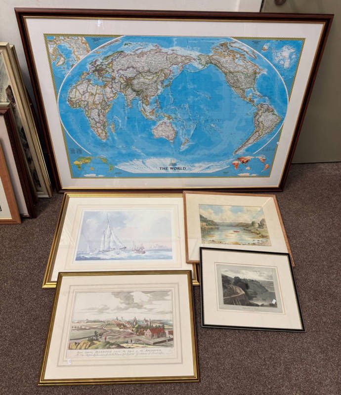 Large framed map of the world by national geographic, and various other pictures. largest; 72cm x 109cm