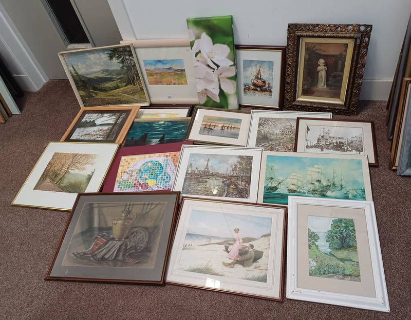Morag stevenson, aberdeenshire scene 'summer at bennachie', framed watercolour, together with various other pictures largest; 33cm x 46cm