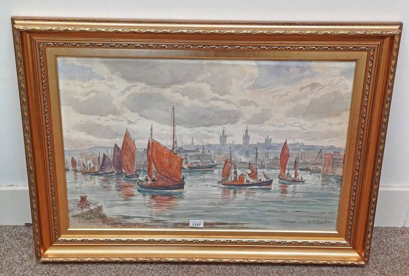 Alexander ballingall aberdeen harbour signed & titled gilt framed watercolour 49 x 73 cm