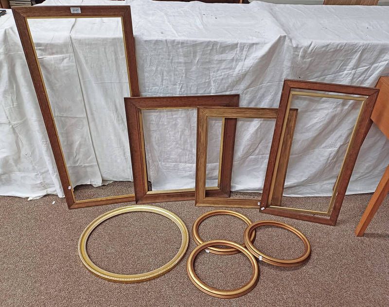 4 edwardian oak frames together with three other oval gilt frames and a circular frame
