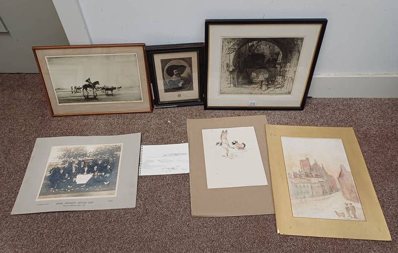 Hedley fitton (1858-1929), 'a gateway into florence', signed in pencil, artists proof etching, together with other pictures and prints