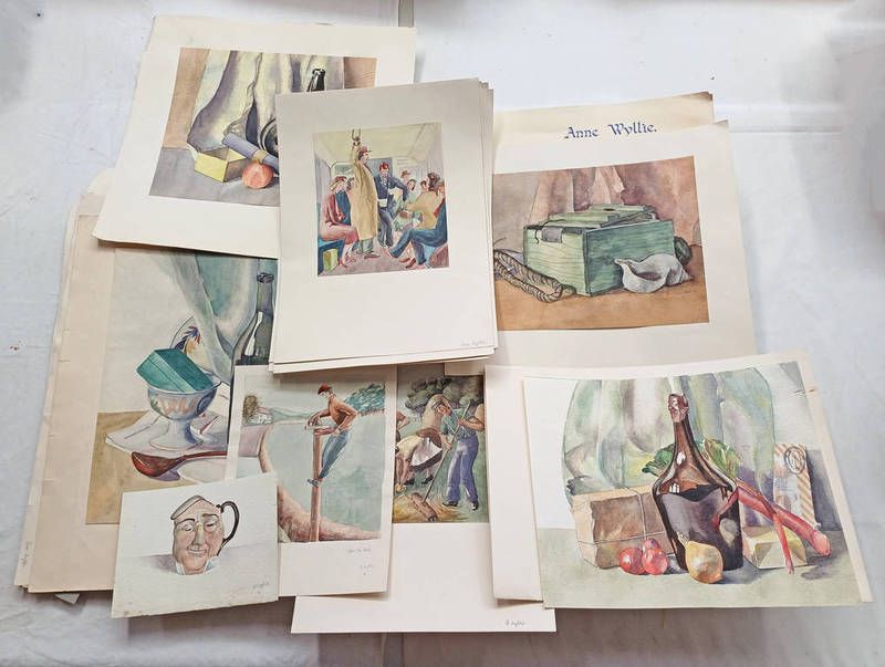 Various unframed watercolours on paper of still life, etc, some signed ann wylie, in a box