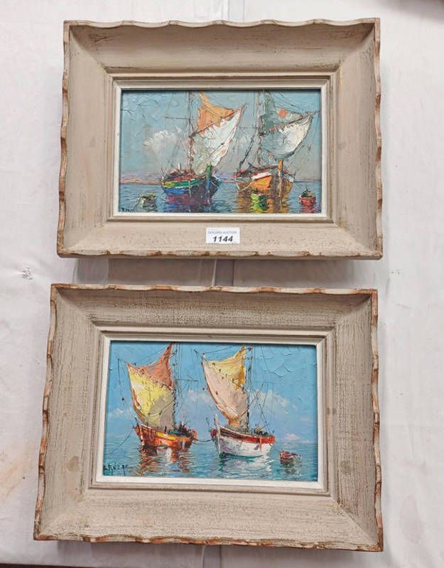 Victor bruzac, 2 framed oil paintings on board depicting sailing boats, both signed, 15cm x 24cm